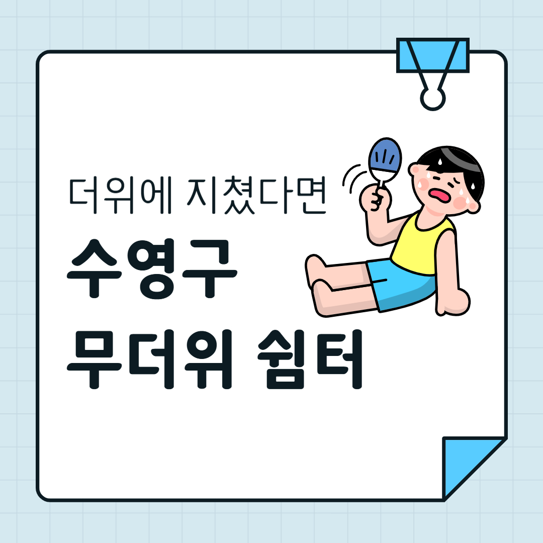 폭염이 심할수록 가까운 **수영구 공공 무더위쉼터**를 잘 활용하는 것이 중요합니다. 주민 누구나 무료로 이용할 수 있으며, 특히 노약자·취약계층에게 큰 도움이 됩니다.
