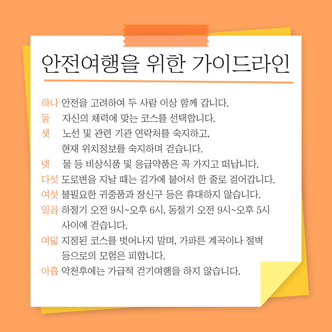 - 🎯Tip: 다양한 편의시설(화장실·매점)이 있어 초심자나 가족 단위 걷기에 좋습니다.