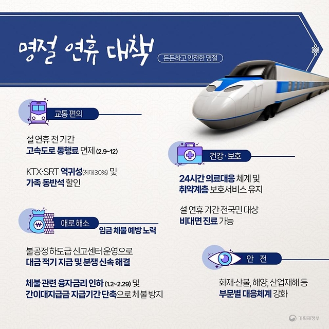 - 설 연휴 전기간 고속도로 통행료 면제(2.9.~2.12.)
